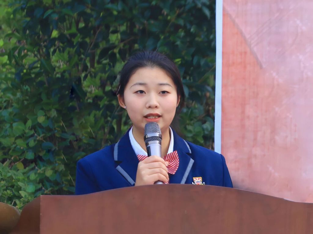 美术学院文物保护与修复专业学生许东平作为学生代表发言,她分享了自己因对历史的热爱选择该专业,并在安阳学院博物馆担任讲解员的经历。他表示,近距离接触文物让自己深刻理解 “与历史对话,为未来守护” 的使命,未来将努力成为文物守护者与文化传播者。