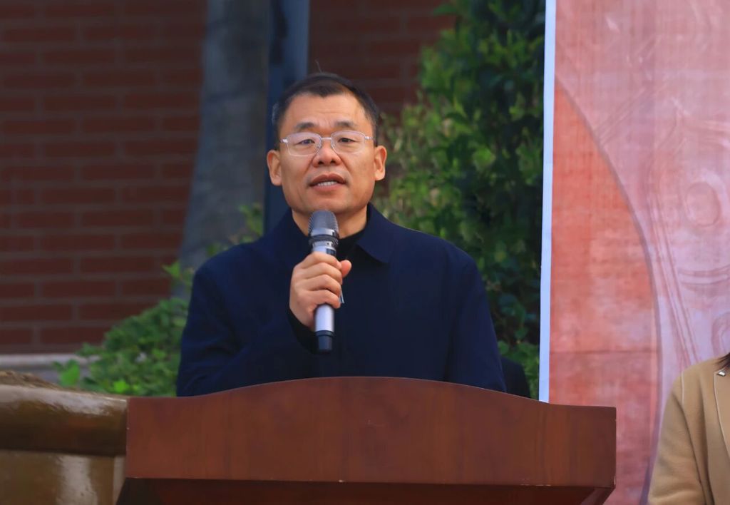 党委副书记、校长单伟龙致欢迎词。他表示,此次展出的甲骨文、玉器、瓷器等珍品,凝聚着先民哲思与匠心,承载着东方美学精神内核。作为植根安阳文明厚土的高校,安阳学院始终以“以文化人、以美育人”为理念,学校博物馆正是践行这一理念的生动课堂,希望师生能在与文物的对话中感知历史、汲取精神养分。