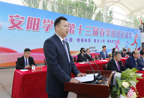 青春点燃梦想,体育铸就辉煌。迎着四月清晨的朝阳,我校第十三届春季田径运动会于4月19日上午在体育场拉开帷幕。校领导单伟龙、王爱民、马保建、张宇、张明选及各行政、教学单位负责同志出席开幕式,各学院师生代表参加开幕式。开幕式由党委学工部部长、学生处处长崔永强主持。