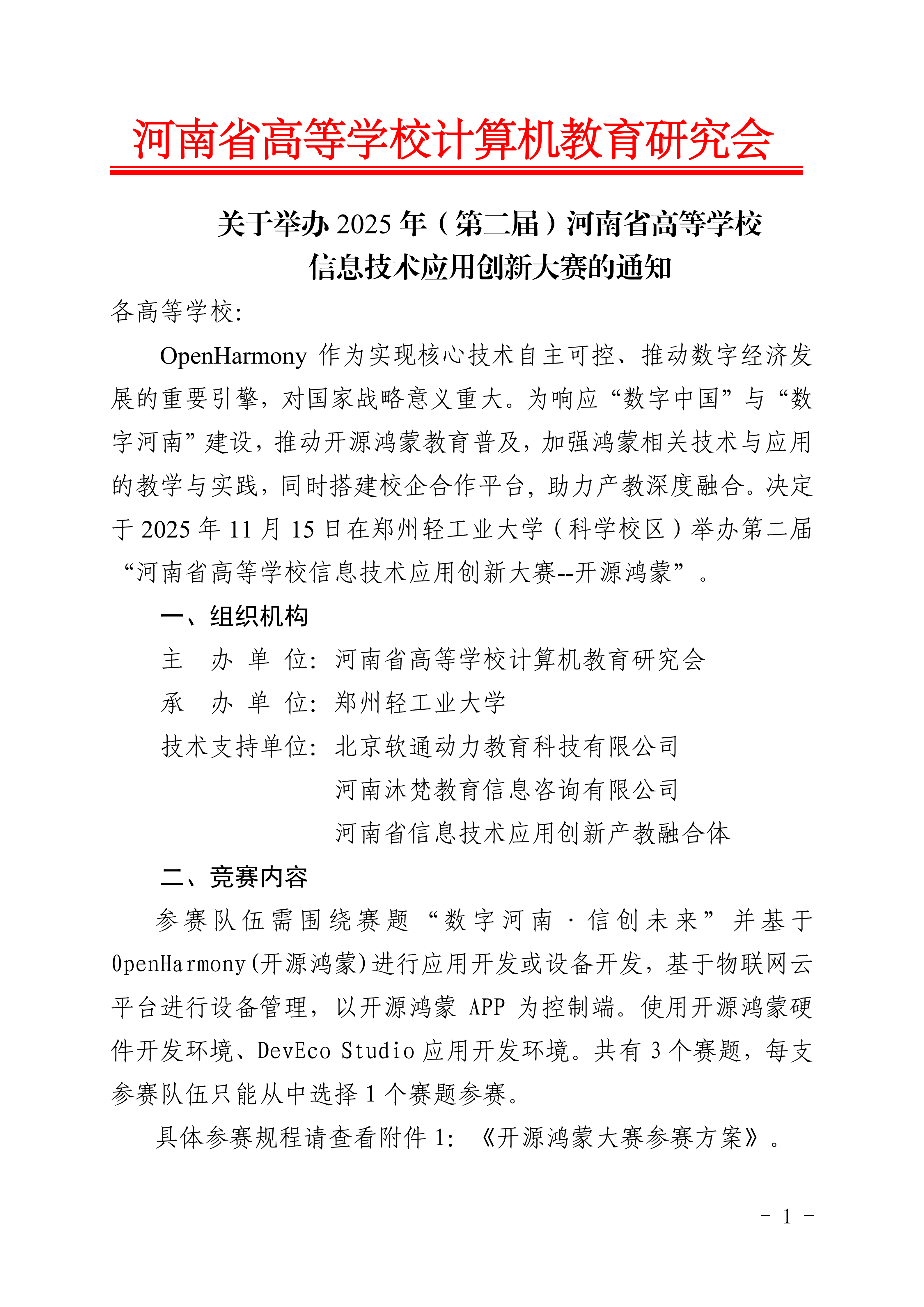 关于举办2025年(第二届)河南省高等学校信息技术应用创新大赛的通知