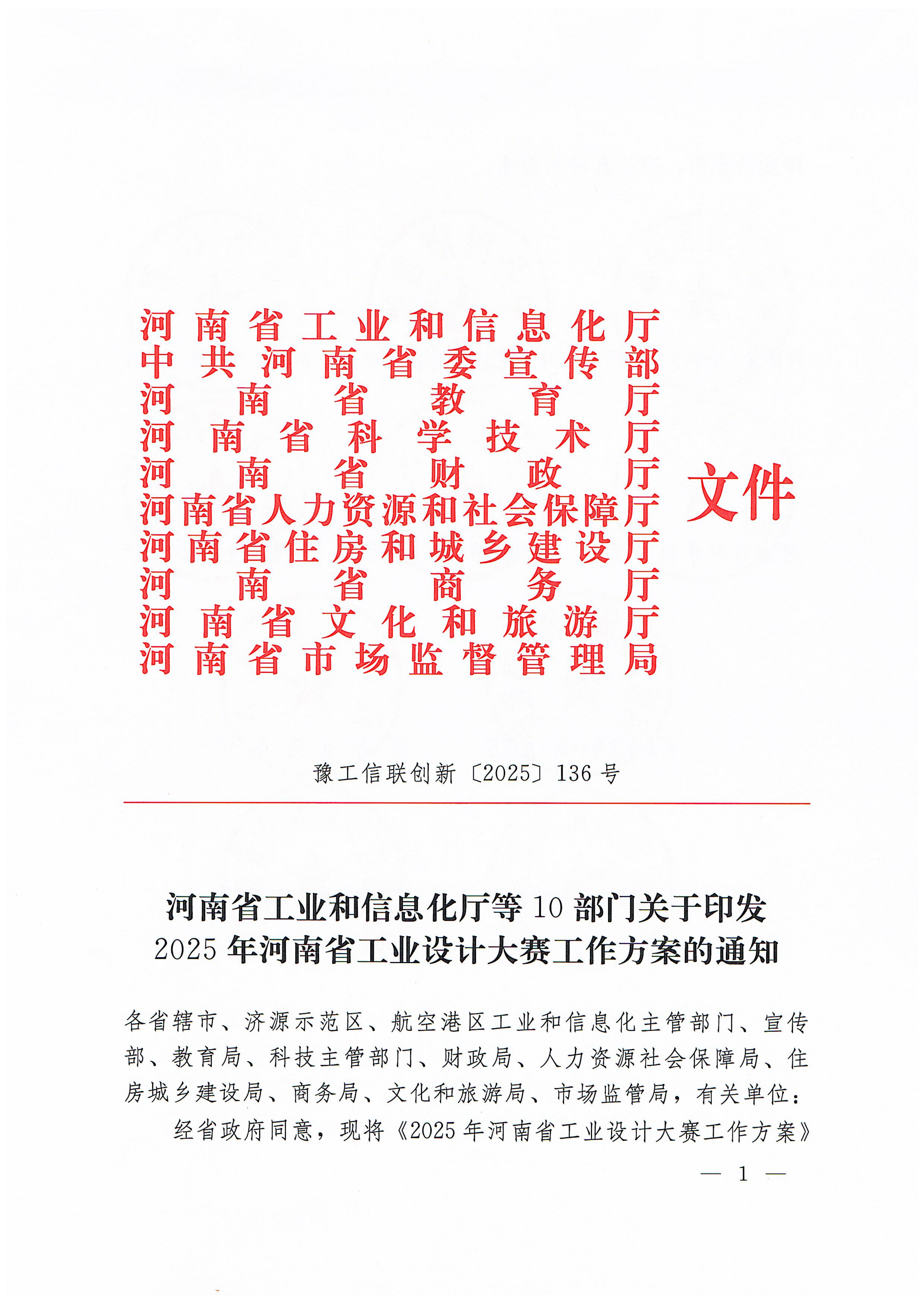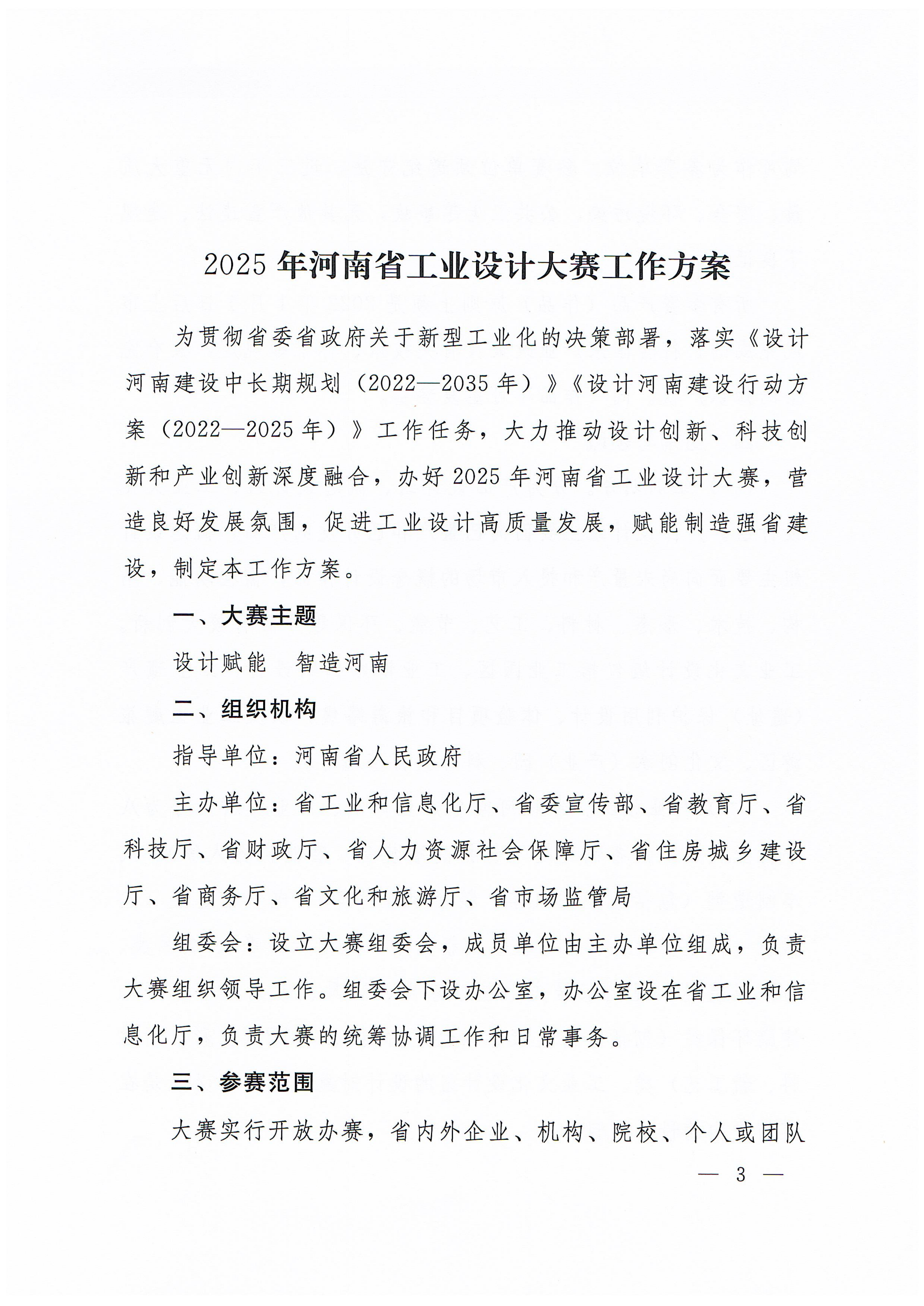 关于印发2025年河南省工业设计大赛工作方案的通知