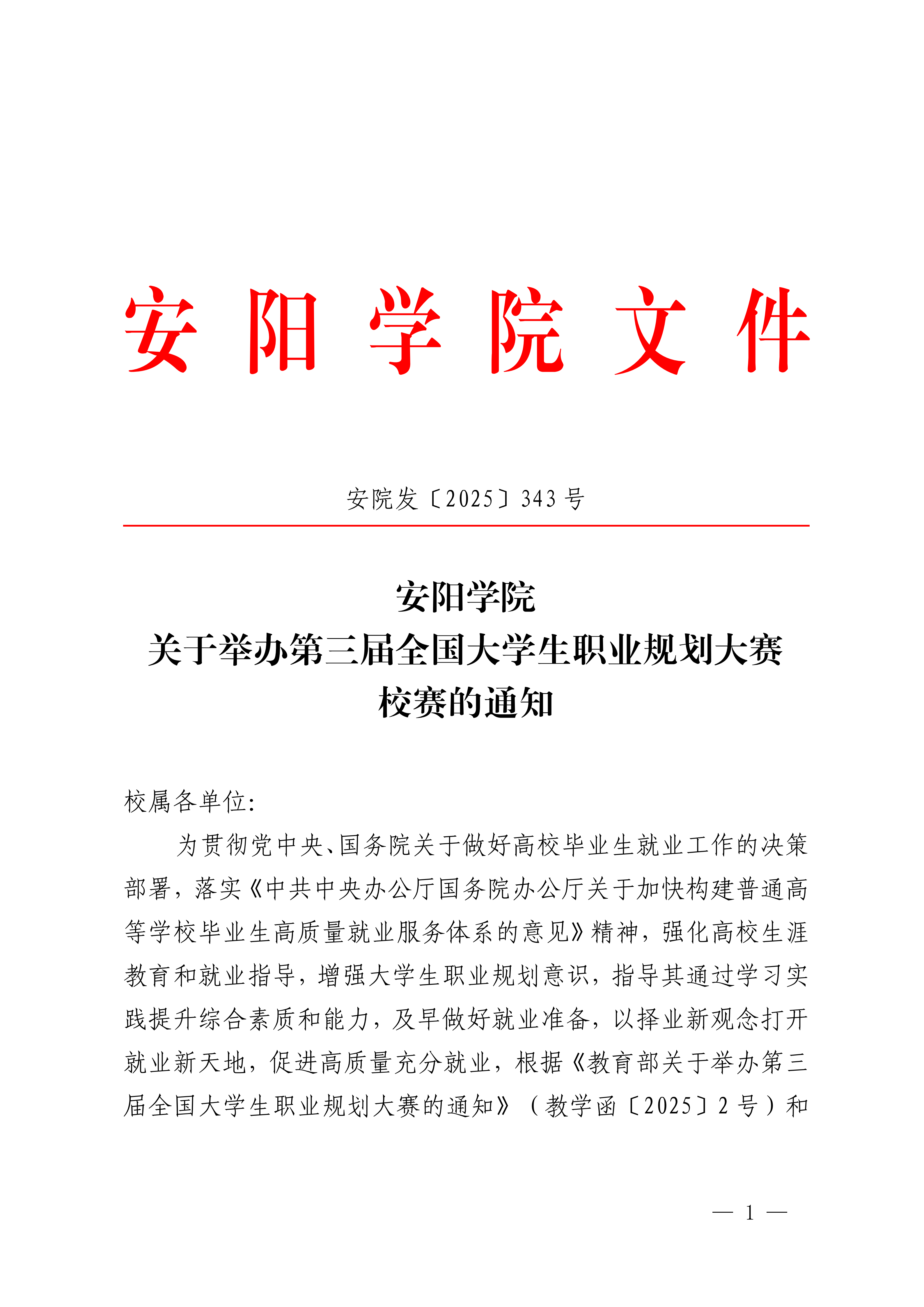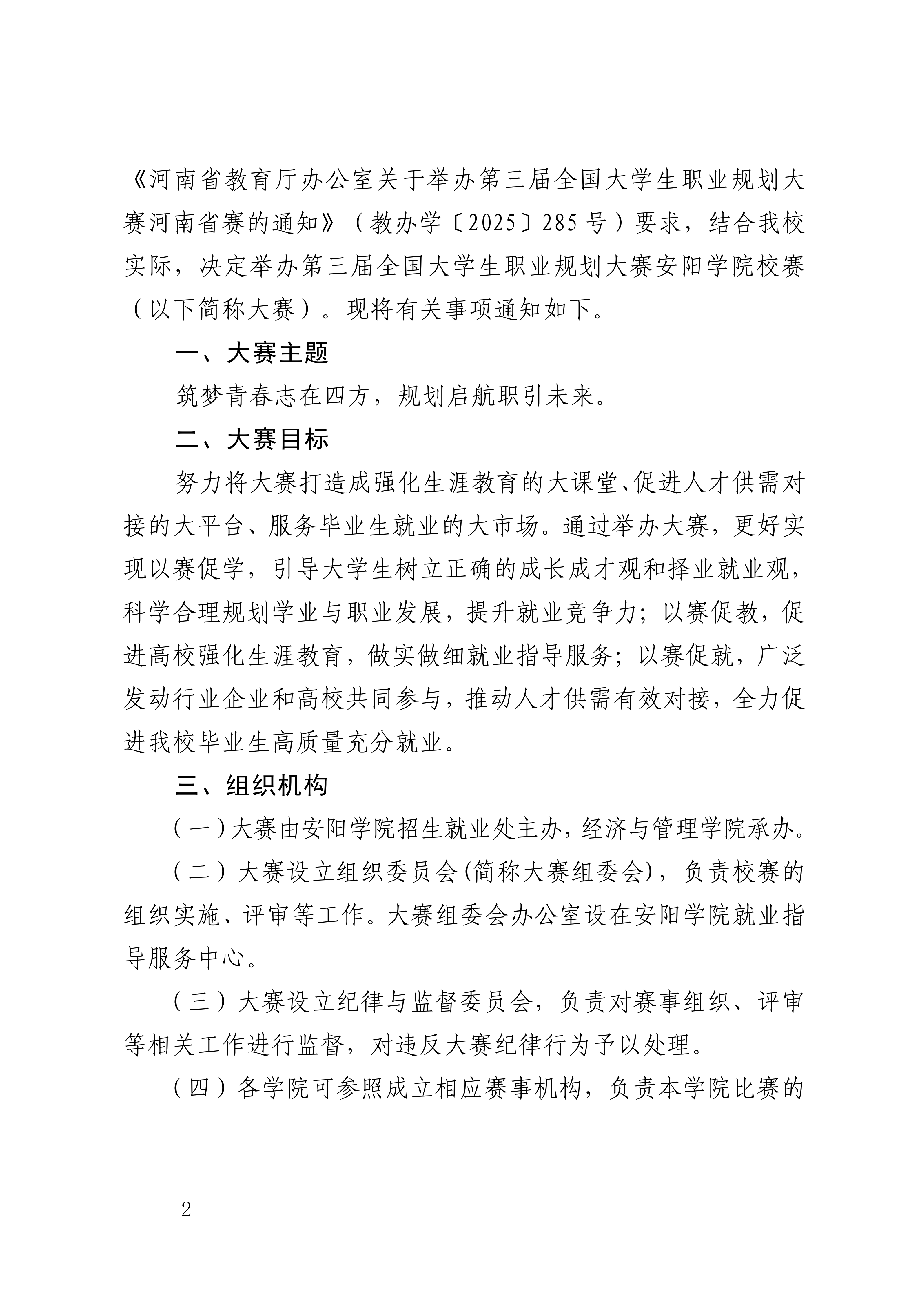 安阳学院关于举办第三届全国大学生职业规划大赛校赛的通知