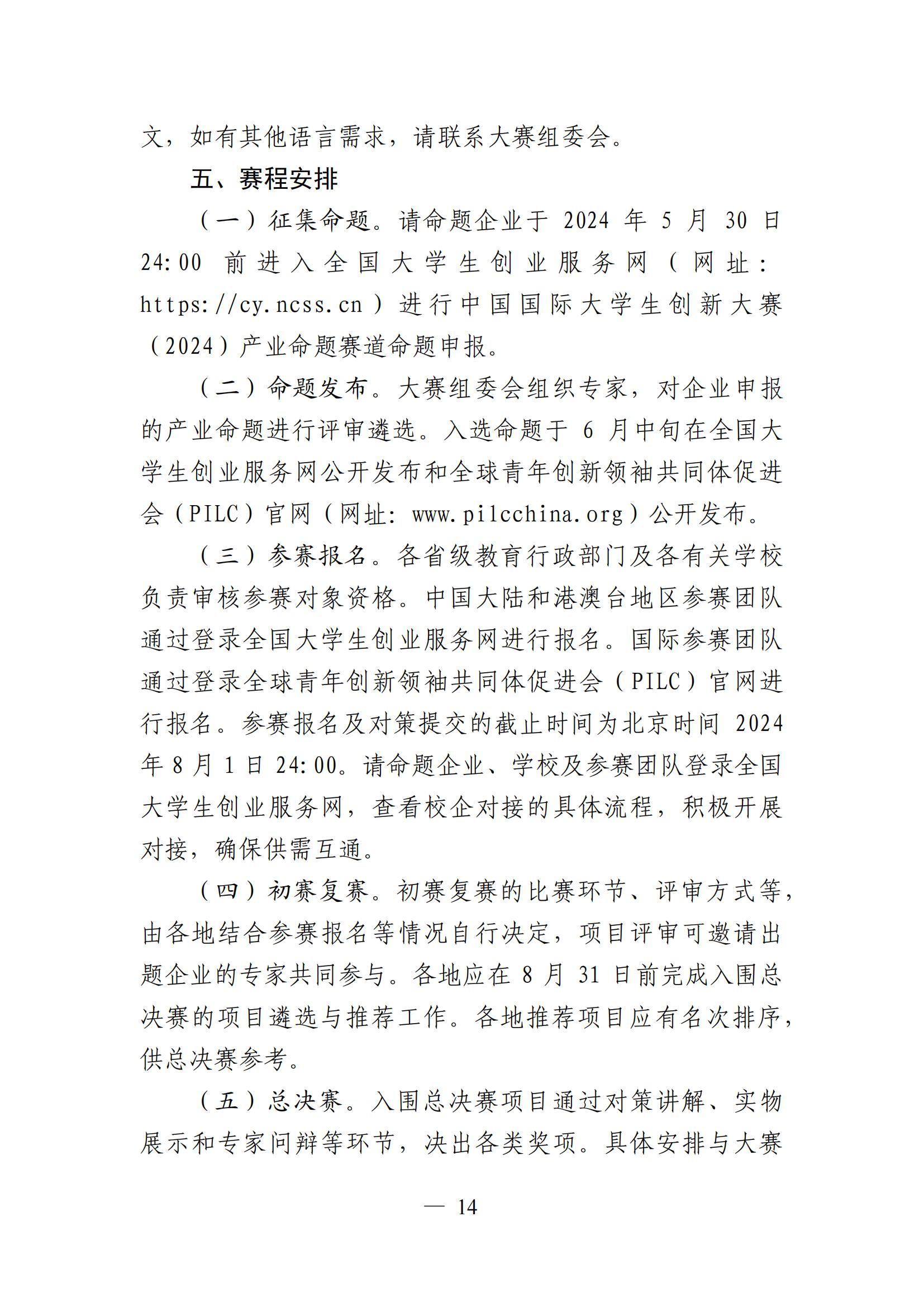 教育部关于举办中国国际大学生创新大赛(2024)的通知