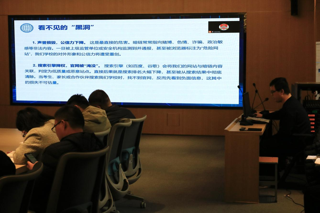在专题培训环节,信息化建设与管理中心老师白文康作了网络安全专题培训。他结合学校网站存在的问题及实际案例,分析了常见的网络安全隐患与攻击手段,并讲解了实用的防护策略与应急处置方法,有效提升了参会人员的网络安全意识和防护技能。