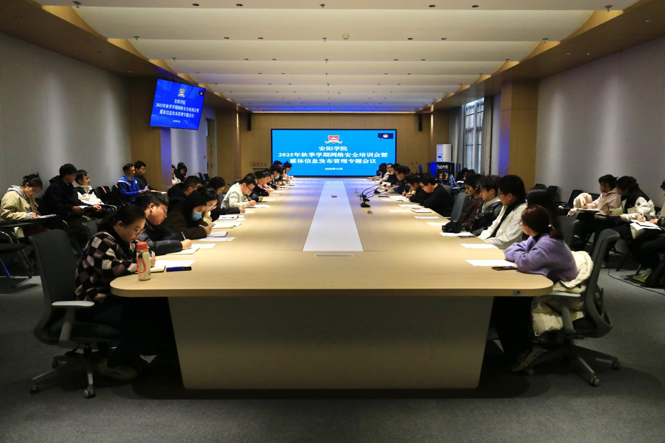 为进一步加强学校网络信息安全管理,规范各类媒体信息发布流程,10月24日,安阳学院在图书馆第六会议室召开2025年秋季学期网络安全培训会暨媒体信息发布管理专题会议。纪委书记、副校长姚林茹出席会议并讲话,会议由党委宣传部部长朱加旺主持。