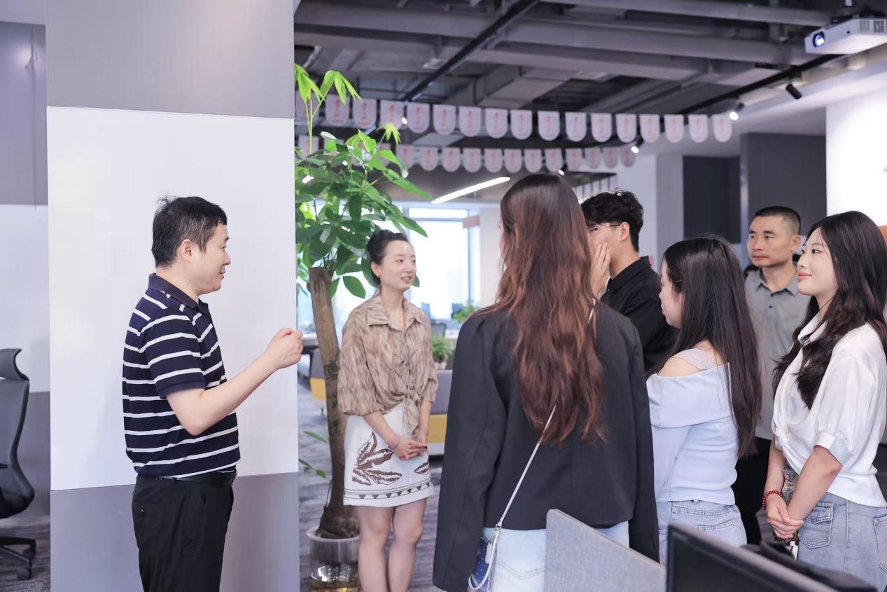 在工作人员的引导下,学生们先后参观了顶端新闻的新闻采编中心、视频制作工坊、新媒体运营大厅等核心部门。参观过程中,工作人员结合自身工作经验,详细向学生们介绍了顶端新闻的发展历程、平台定位、内容生产流程以及融媒体产品的创新思路。从新闻线索的挖掘、选题策划,到文字撰写、视频拍摄剪辑,再到新媒体矩阵的运营推广、用户互动维护,工作人员都进行了细致讲解,并现场展示了多款具有广泛影响力的融媒体作品案例。