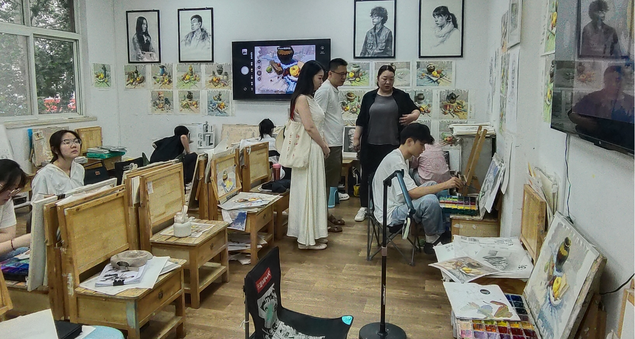 踏入空间画室,仿佛置身于艺术的殿堂。创作区里,学员们专注挥毫,画架上色彩斑斓的画作,展现出无限创意;教学示范区,老师生动讲解,学员们认真聆听,互动氛围热烈;作品展示区,一幅幅佳作或写实或抽象,彰显着画室深厚的艺术底蕴。画室负责人热情介绍,随着社会对艺术教育重视程度的提高,画室业务不断拓展,对专业人才的需求也与日俱增。