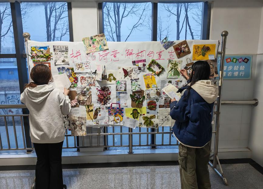 活动现场,同学们充分发挥专业特长,巧用旧书页、杂志、报纸、海报、落叶、鲜花等多样纸质材料,将剪裁的文字碎片精心布局、创意拼贴。从文字的挑选、剪裁到画面的构图、组合,每一个环节都凝聚着同学们的巧思,或贴合经典诗词意蕴,或彰显青春创意表达,或传递积极向上的生活态度,尽显美院学子的审美素养与创作能力。所有参赛作品均为原创,创作者们还为作品附上专属创作说明,清晰阐述灵感来源与表达意图,让拼贴诗不仅有视觉之美,更有思想之韵。