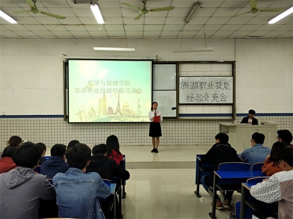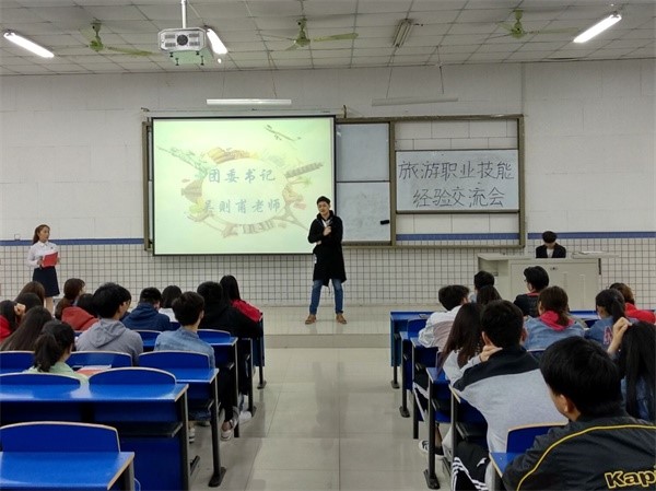 为全面普及旅游管理专业知识,增强学生对旅游管理专业以及相关行业的了解,促进学生之间的交流沟通,4月24日晚,经济与管理学院组织各班学生于阶梯三教室召开旅游职业技能交流会,院团委书记吴则甫出席本次交流会。