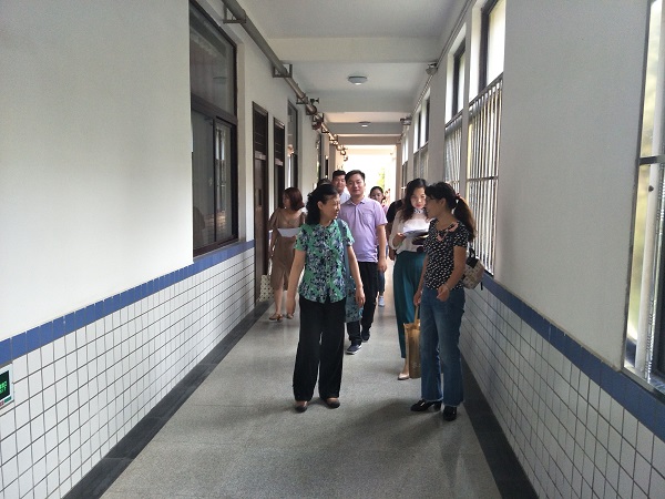 新学期新气象!8月27日,外国语学院党总支书记、院长董爱华,党总支副书记李伟荣带领外国语学院全体教研室主任及思政辅导员深入教学一线,对学生的上课情况、教师课堂教学情况及学生的文明课堂行为进行检查指导。