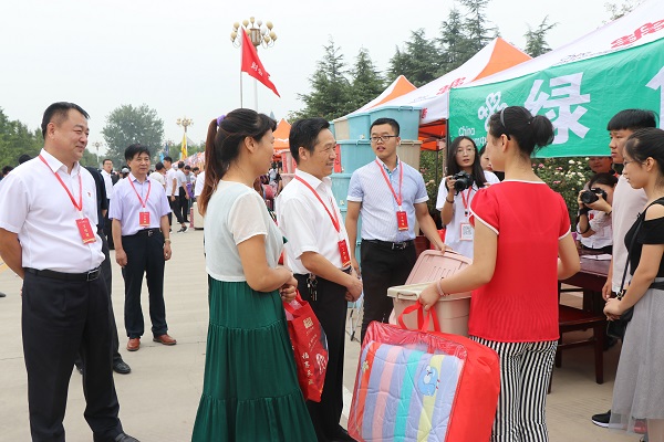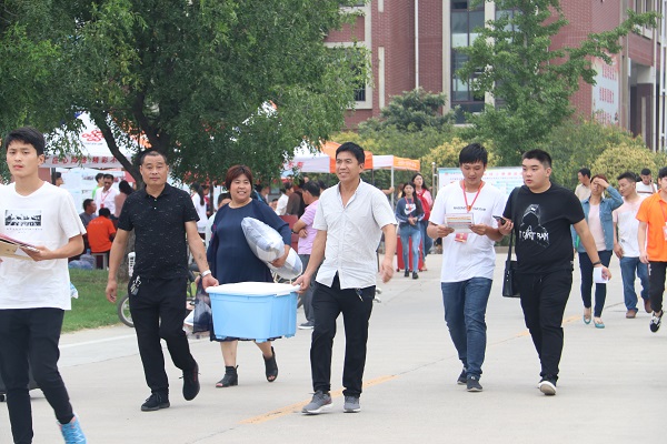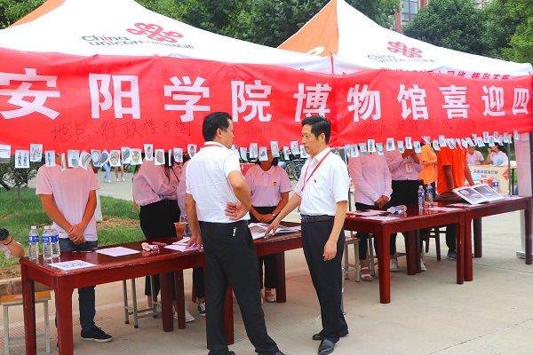 领导一行首先来到博物馆宣传展览点,通过博物馆馆长贺启俊的介绍了解了博物馆为迎新工作所准备的文化展板,通过照片、绘画等展现了我校历史感极强的红色展品和甲骨文藏品,充分体现了我校丰厚的历史文化气息。随后,领导一行依次走访了各二级学院迎新站点,他们每到一处都认真了解各学院迎新工作安排,仔细询问新生报到进展情况及迎新过程中遇到的问题等,强调对学生的困难要全力解决。同时对工作在一线的迎新人员亲切慰问,叮嘱各部门及学院相关负责人,在新生接待工作中要做到细致周到,做到人性化、亲情化,并及时对新生进行入学教育,帮助新生尽快熟悉并适应大学生活。领导们的视察和亲切慰问让新生和家长感受到了学校的关怀与温暖。