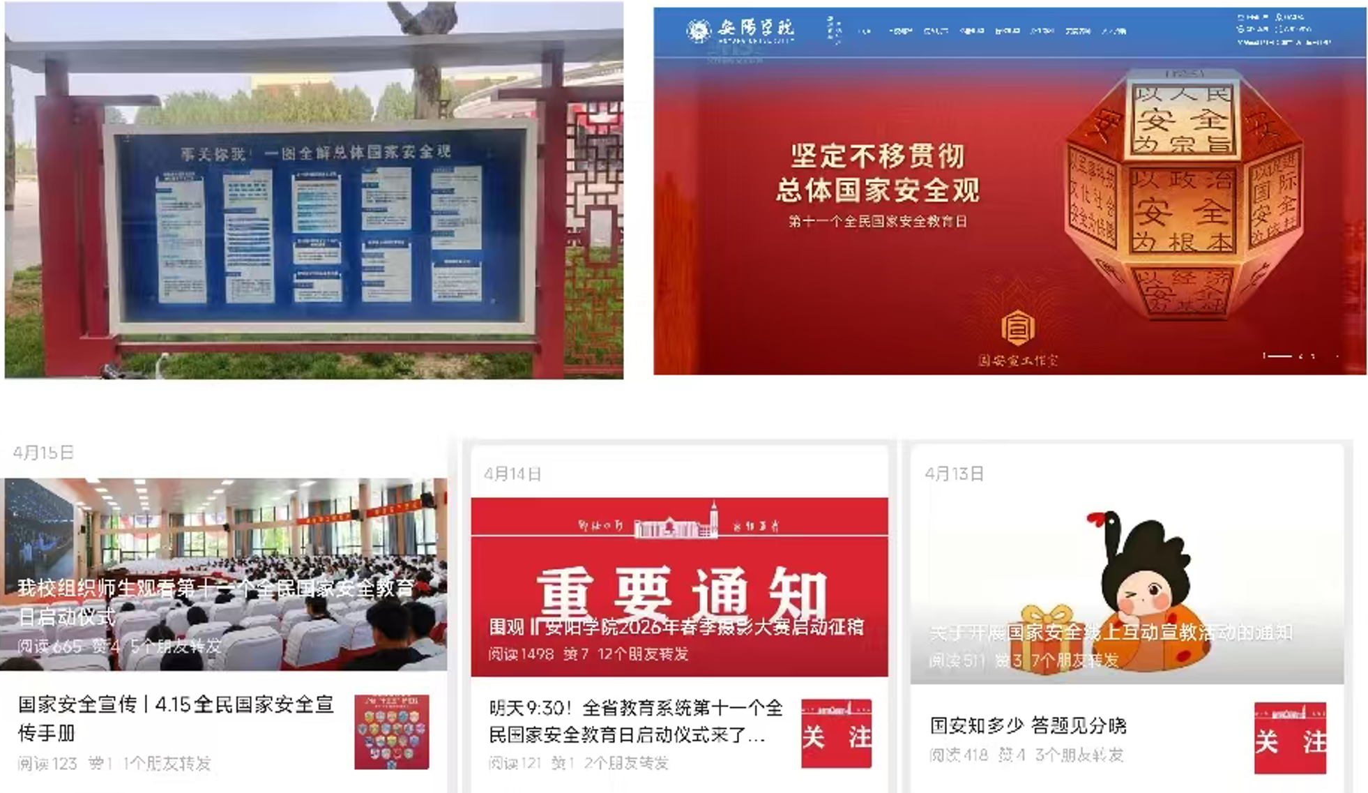 党委宣传部精心组织开展全民国家安全教育线上线下系列宣教活动。线上依托官方微信公众号等新媒体平台,推送“4·15全民国家安全教育日”宣传手册、国家安全重点领域解读等主题推文,以通俗形式普及法律法规与安全知识,用好网络思政阵地,将国家安全教育融入日常线上育人,引导师生牢固树立总体国家安全观。线下充分利用校园电子屏滚动播放宣传标语,制作国家安全知识专题展板进行集中展示,图文并茂宣讲总体国家安全观核心要义与安全防范常识,积极营造 “国家安全、人人有责” 的浓厚校园氛围,切实增强师生维护国家安全的思想自觉和行动自觉。