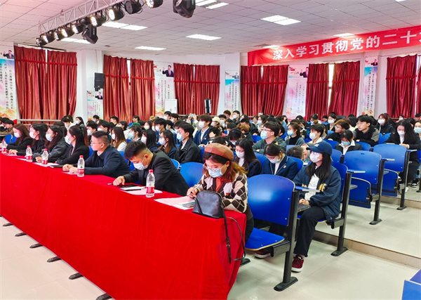 为深入学习贯彻宣传党的二十大精神,3月13日下午,美术学院在阶梯五开展学习贯彻党的二十大精神集中宣讲暨“青马工程”培训班开班。校党委宣传部长姚林茹受邀为我院师生作集中宣讲报告,党总支副书记李怡彤出席会议,会议由学院团委书记刘嘉敏主持,全体思政辅导员、“青马工程”学员及学生代表参会。