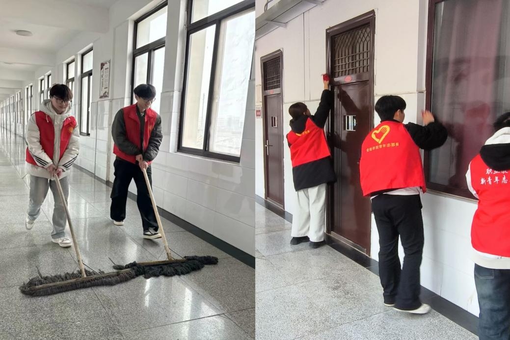 在教学楼,同学们拿着扫帚、拖把等清洁工具,对走廊、教室、楼梯等区域进行了全面细致地打扫。他们不放过任何一个卫生死角,用自己的双手为师生们打造了一个干净、整洁的教学环境。