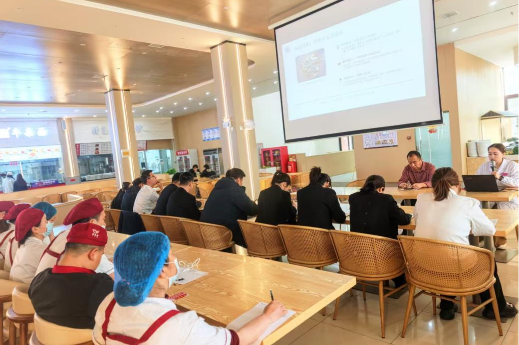 本次讲座围绕校园餐饮提质升级需求,以普及科学膳食知识、推动餐饮从“安全供餐”向“营养供餐”转型为目标,各餐厅班组长在管理人员组织下,统一着装、准时参会,全体参训人员认真聆听、细致记录,现场学习氛围浓厚。