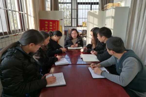 为深入学习宣传贯彻党的党的十九大精神,做新时代党和人民满意的好教师,培养有理想、有本领、有担当的青年大学生,2017年11月28日9时,文学与传媒学院党总支副书记郭巧丽带领各思政辅导员在教学楼A1-205办公室学习领会党的党的十九大精神,为带领青年学生学习党的十九大精神吹响冲锋号做准备。