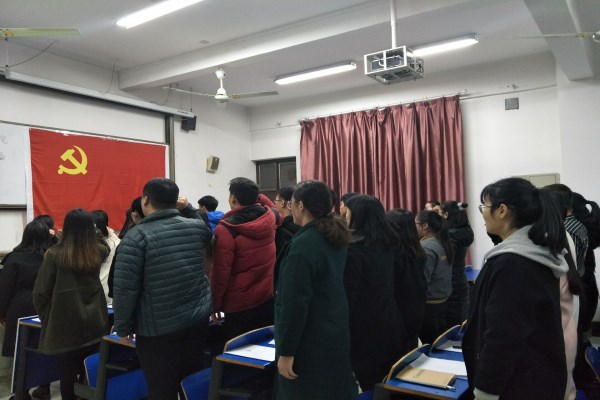 18时,大会准时开始。39名党员发展对象逐一宣读入党志愿书,他们都真情表达了对党的向往、对党的忠诚,纷纷表示将坚定不移跟党走,为党的事业奉献自己的力量。随后,学生党支部书记宋培亭寄语各党员发展对象,希望他们在思想上及行动上时刻与党组织保持一致,将党的党的十九大精神深入贯彻到今后的工作、学习中,争做“四讲四有”的合格党员。接着,所有党员发展对象暂时回避,所有参会的正式党员进行讨论并充分发挥各自意见,拥有表决权的正式党员对各党员发展对象能否转为预备党员进行了举手表决。经表决,一致同意接收陈飞等39名同志为中共预备党员。最后,全体党员发展对象面向党旗庄严宣誓,他们高亢激昂,声音久久回荡在耳边,真正展现出了对党崇高的敬意。至此,预备党员接收大会圆满落幕。