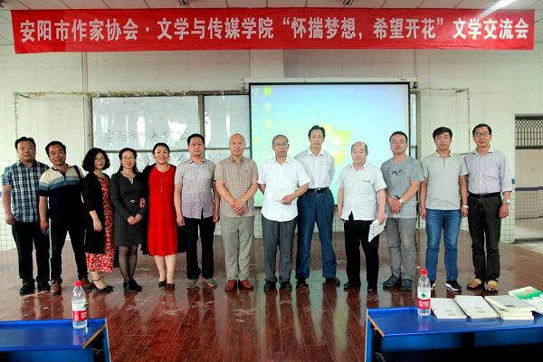 为进一步提升同学们的文学素养和文化品位,促使同学们养成常写作、爱写作、会写作的良好习惯,2018年5月18日,文学与传媒学院组织开展了“怀揣梦想,希望开花”为主题的文学交流会活动。此次活动旨在为市作协与我院搭建一个互动交流平台,激发同学们的文学热情和创作活力,为提升同学们的写作水平打下基础。安阳市诗词协会副主席祁明星,安阳县作家协会副主席庞思梦,北关区作家协会主席嘉德等十余名作家应邀出席。
