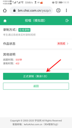 15、考生有5分钟阅题准备时间。准备期间,考生须参考《安阳学院2020年音乐类专业视唱视频录制模板》调整好录像状态。根据语音提示开始视唱考试视频录制,录制时间为4分钟,超过4分钟视唱考试录制会自动结束。完成后,点击“结束录制”。