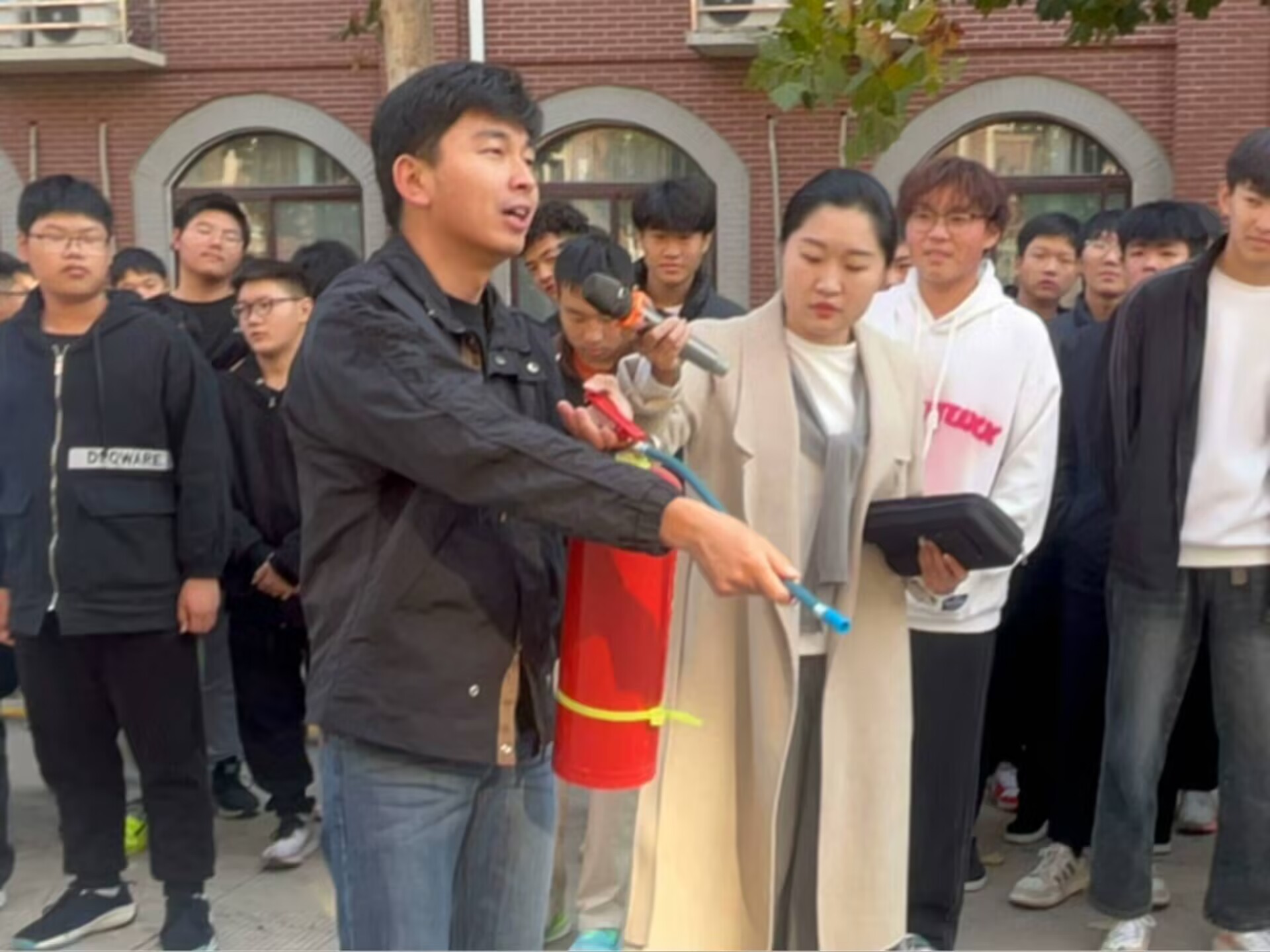 为了提高学院教职工及学生的消防安全意识,使师生掌握消防安全常识,提升师生面对初期火情的灵活应对能力、安全自救能力、各部门在处理火灾突发事故中的协调、配合能力,创造良好的消防意识,职业教育学院于11月6日在A30宿舍楼教学楼进行消防技能培训和疏散演练。
