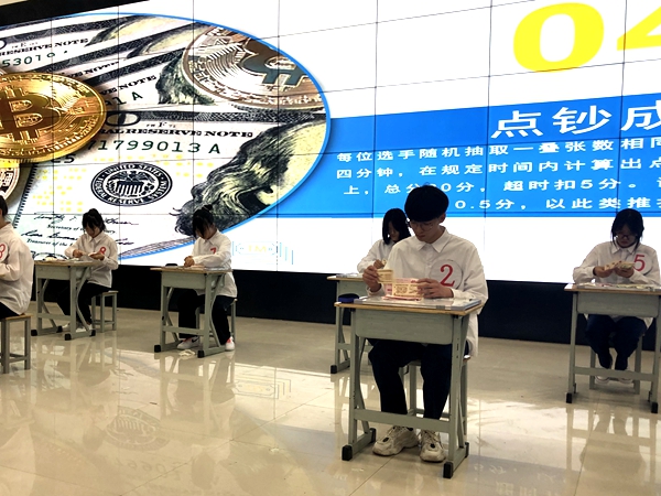 本次比赛针对会计、财管专业学生开展,旨在选出专业“技能之星”,大赛的从全体专业学生中产生30位复赛人员,再由30位复赛学生角逐产生8位决赛选手。该竞赛共分为三个环节:第一环节“头脑风暴”,学生随机抽取10道专业问题在规定时间内进行作答,考核学生对专业知识的熟悉程度;第二环节“指尖赛跑”,选手使用计算机进行较大较复杂的金额计算,考核选手盲打计算器准确度;第三个环节“点钞成财”,随机分发点钞券进行金额计算,考核学生对于花式点钞技能的掌握。除环节设置外,中场节目《点钞快闪》利用表演的形式让大家更直观的了解到单指、多指等多种花式点钞方式,为比赛增添了不少亮点。